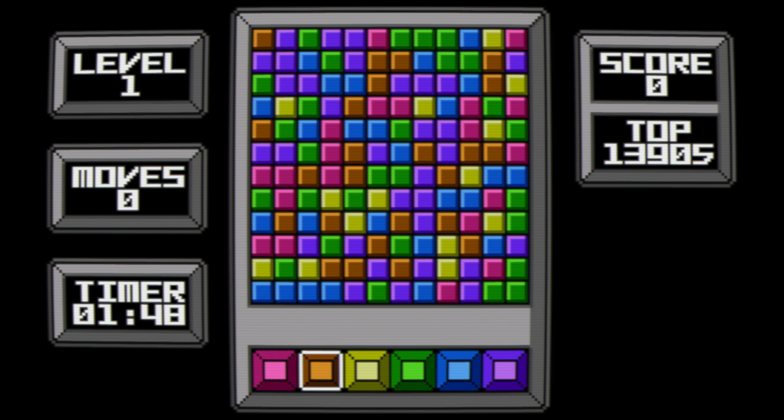 Created with an authentic 8-bit look and feel. This game uses 8x8 tiles, a limited 12 color palette, and synthesized sounds.